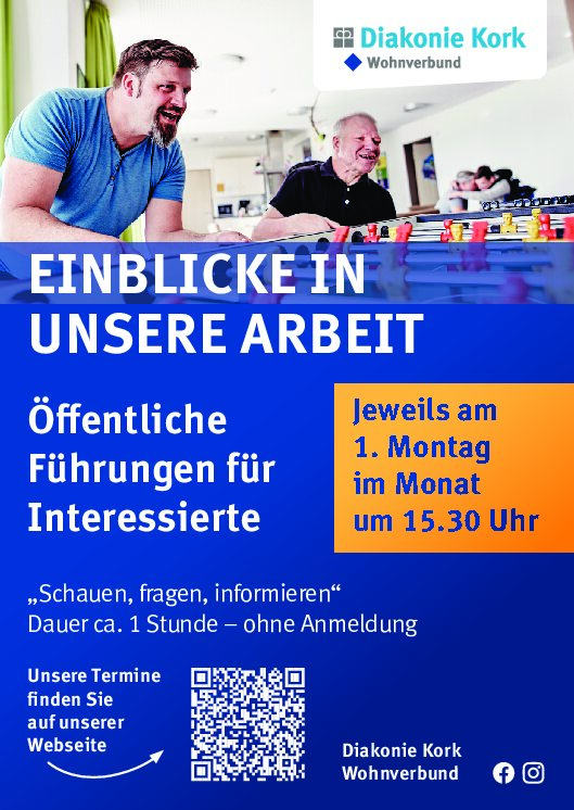 Nutzen Sie die Gelegenheit, um sich umzusehen, Fragen zu stellen und mehr über eine mögliche Mitarbeit im Wohnverbund zu erfahren.